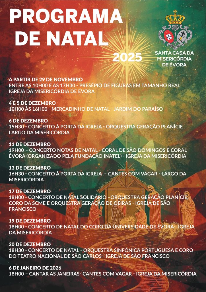 A Misericórdia de Évora apresenta a Programação de Natal 2025, pensada para celebrar a quadra natalícia de forma próxima, inclusiva e participativa.